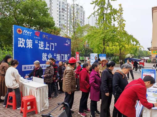 2025年10月30日下午,蓉西新城B区大门口,“政策‘送上门’,就业‘指门路’——温江区金马街道就业帮扶活动第二期·招聘篇”火热开展。此次活动以“政策+岗位”双驱动模式,为居民和企业搭建精准对接桥梁。
